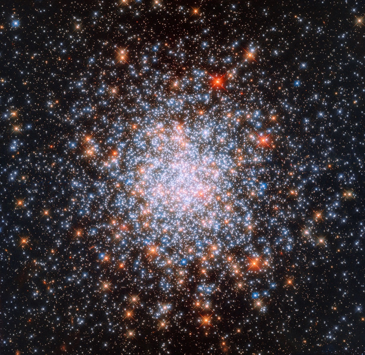 Because globular clusters are so old, their most massive stars burned through their nuclear fuel billions of years ago. Massive stars live fast and die young. They ended their lives in supernova explosions, leaving behind neutron stars or black holes. Medium-mass stars, like the Sun, evolved into red giants and then shed their outer layers, becoming white dwarfs.
