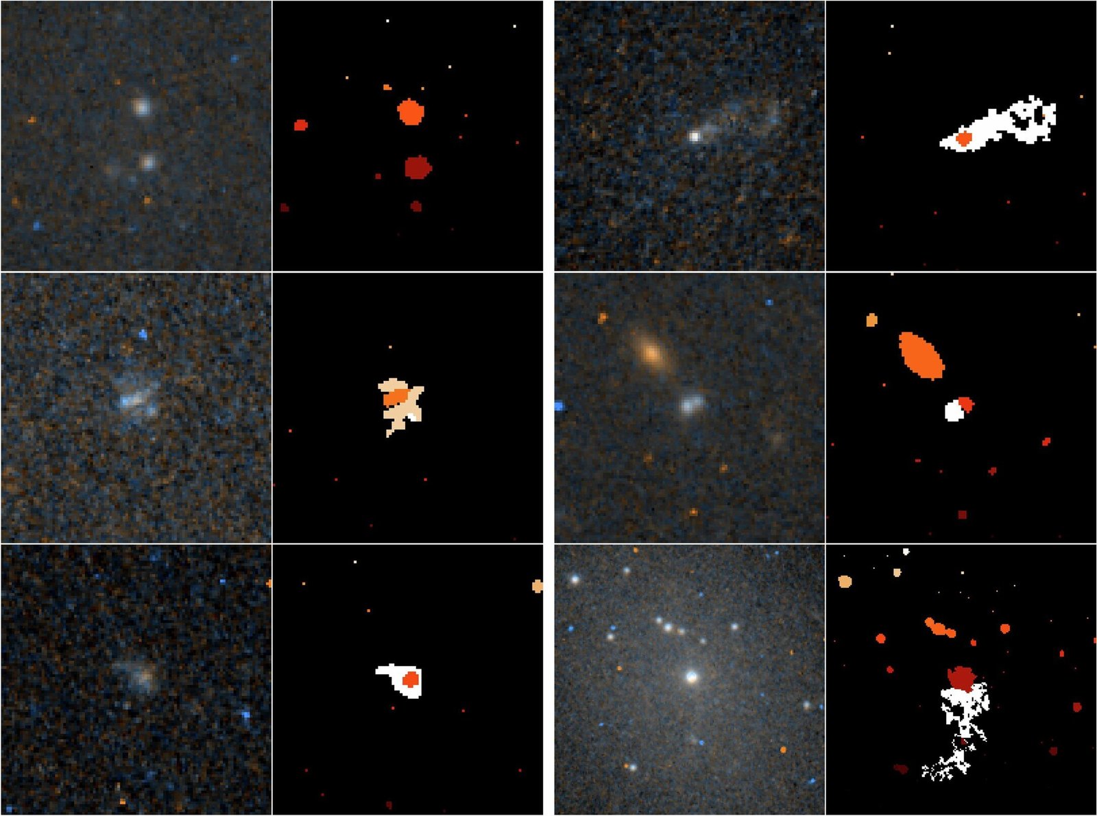 Some of the galaxies had two bright clusters situated unusually close together, while others displayed faint, thread-like streams of light seemingly spilling from their nuclear star clusters. These light trails looked like celestial wisps, barely visible but unmistakably there.