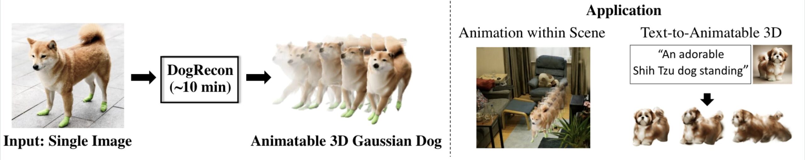 DogRecon tackles these hurdles with an innovative mix of statistical modeling, generative AI, and Gaussian Splatting techniques.