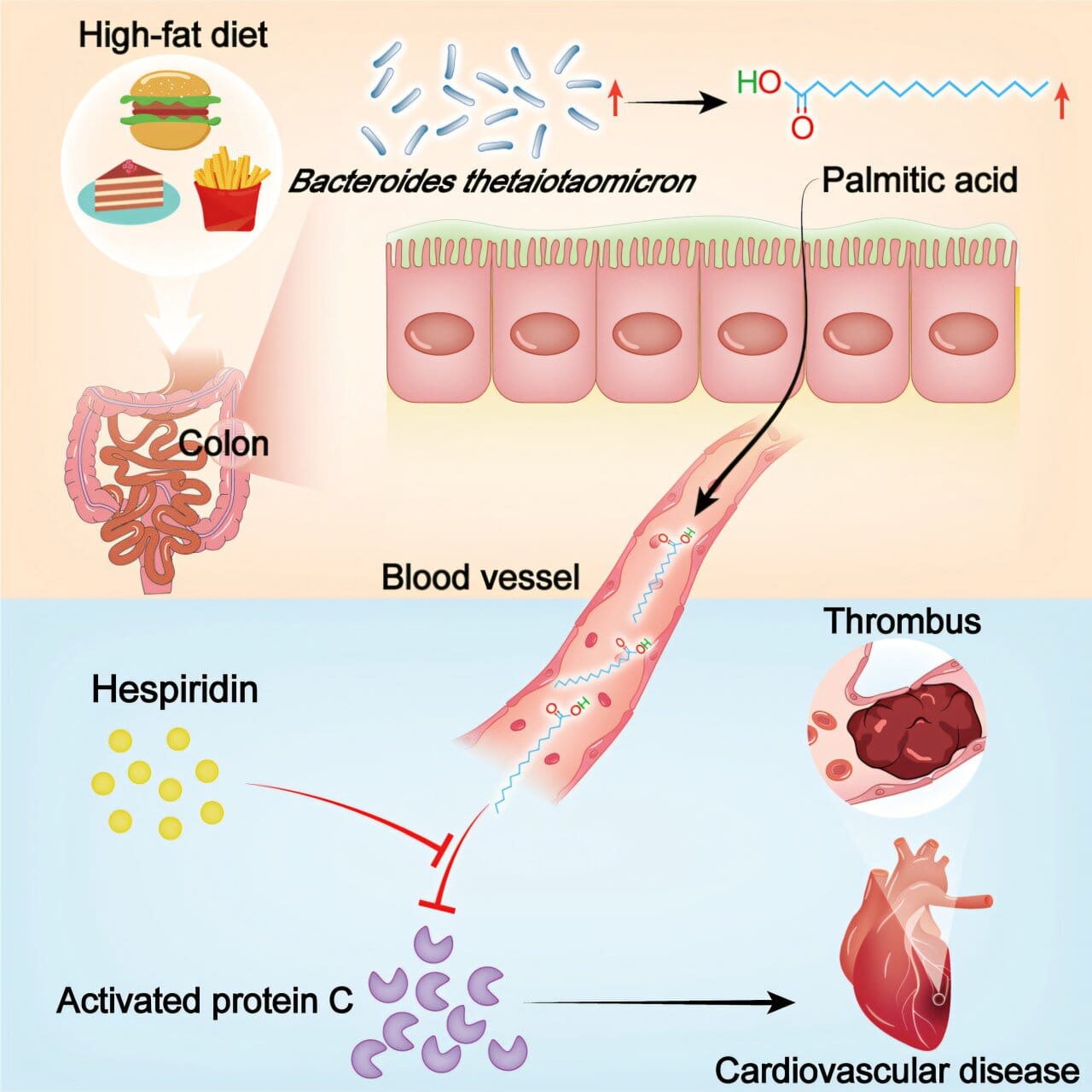 By comparing patients with CVD to healthy individuals, the team found that those with heart disease not only had higher levels of circulating PA, but also showed signs of “hypercoagulation” — blood that clots more easily than normal. In these patients, one bacterial group stood out: Bacteroides thetaiotaomicron (BT), which appeared at more than twice the levels seen in healthy controls.