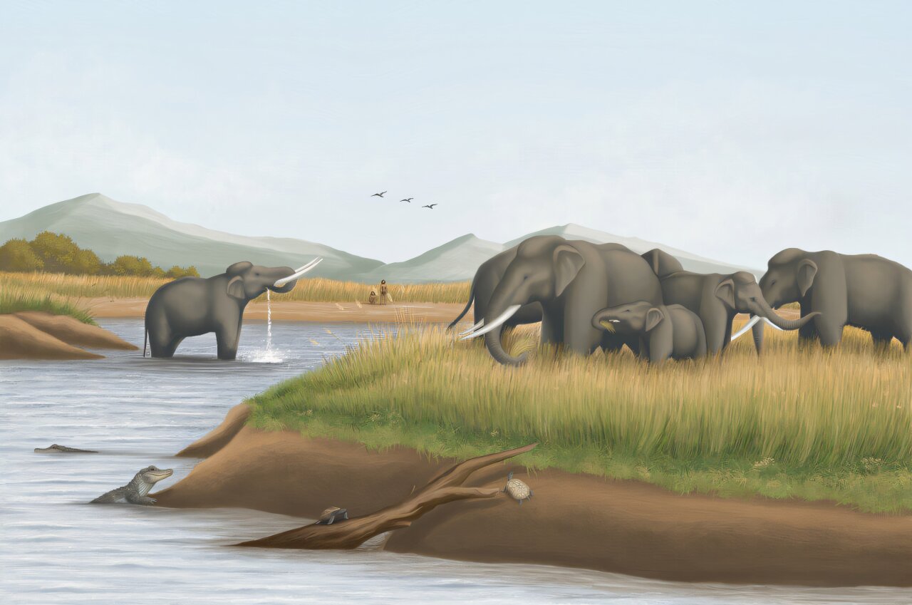 This ancient corridor allowed animals and even early humans to migrate freely across East Asia. Herds of Palaeoloxodon likely roamed alongside other large mammals, such as prehistoric deer and ancient rhinoceroses, all drawn to the fertile grasslands and freshwater rivers that laced the region.