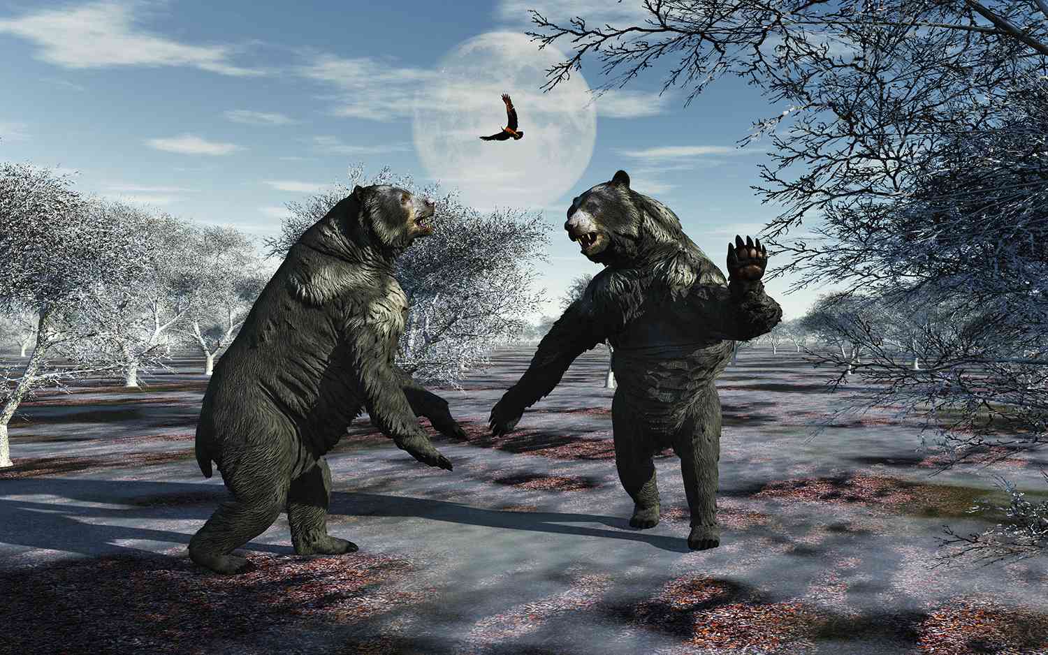 In this scenario, the bear would have dominated feeding sites simply through intimidation. Few predators would risk confronting such an enormous animal. A short-faced bear arriving at a kill made by wolves or saber-toothed cats could easily have forced them away.